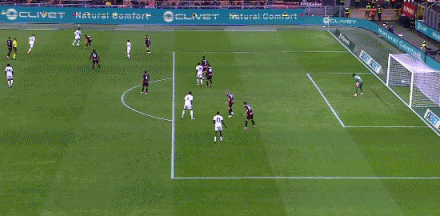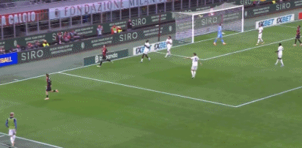 第86分钟,逆转!阿金桑米罗长传助攻恩佐拉单刀破门,米兰1-2比萨
