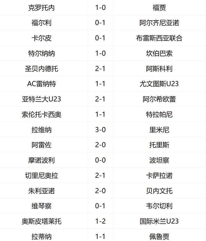A组对C组:韦尔切利-亚特兰大U23